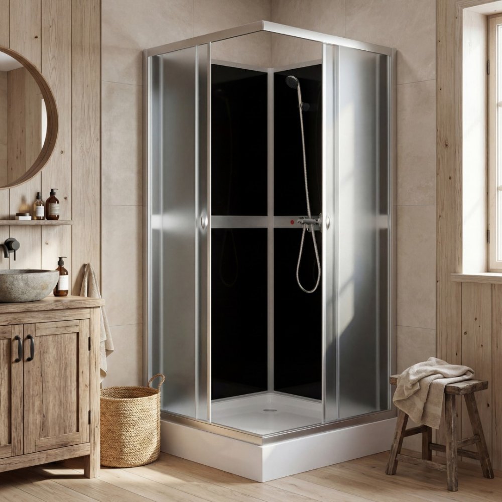 Med 5 mm härdat frontglas och 4 mm härdat bakglas erbjuder Liris 80 både säkerhet och hållbarhet. De kromade ABS-handtagen är ergonomiska och slitstarka, och de satinerade aluminiumprofilerna ramar in kabinen på ett stilfullt sätt. Den kompakta konstruktionen gör att du kan maximera ytan utan att kompromissa på komfort eller stil.