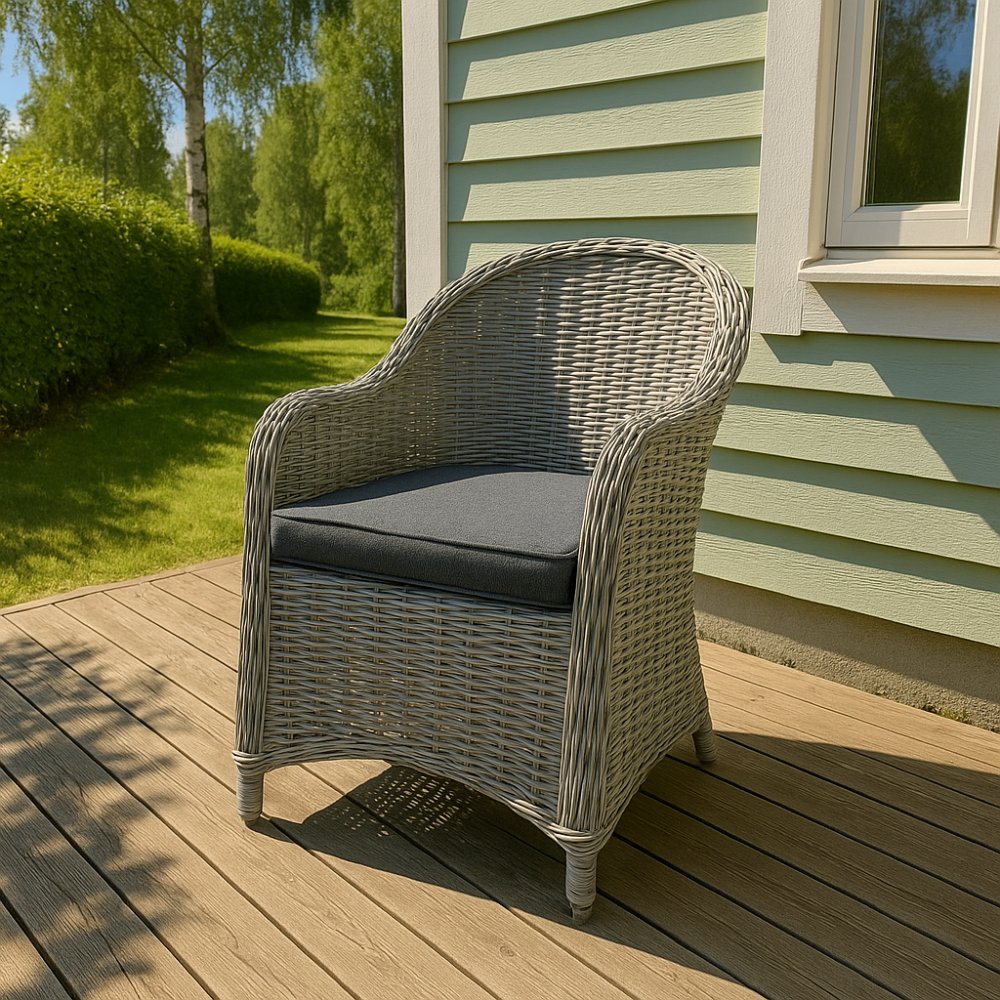 Stolen Mercury kombinerar stilren design med hög sittkomfort. Den generösa formen med armstöd ger en inbjudande sittupplevelse, samtidigt som den cementgrå färgen ger en modern och sofistikerad känsla. Stolen är tillverkad i slitstarka material anpassade för utomhusbruk och fungerar lika bra som solitär loungestol som i grupp runt matbordet.