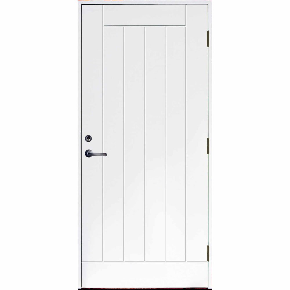 Många ytterdörrar på marknaden har en slät insida, men med denna dörren får du både insida och utsida med det fina frästa mönstret. Dessutom har den fabriksmonterad dubbel tätningslist för extra isolerande effekt, låskista och justerbara gångjärn inkluderat.
